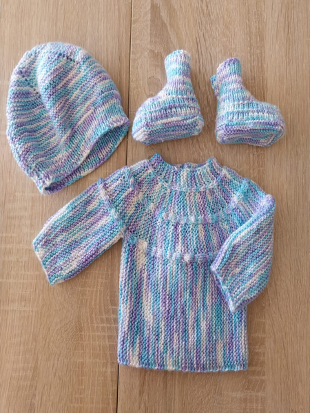 Reprendre les 15 m de droite ajouter 15m reprendre les 12 m du milieu ajouter 15 m reprendre les 15 m de gauche . Tricoter 10 rangs (5 barres de mousse)